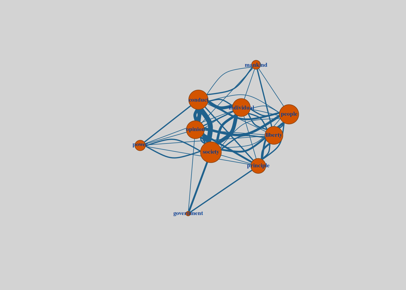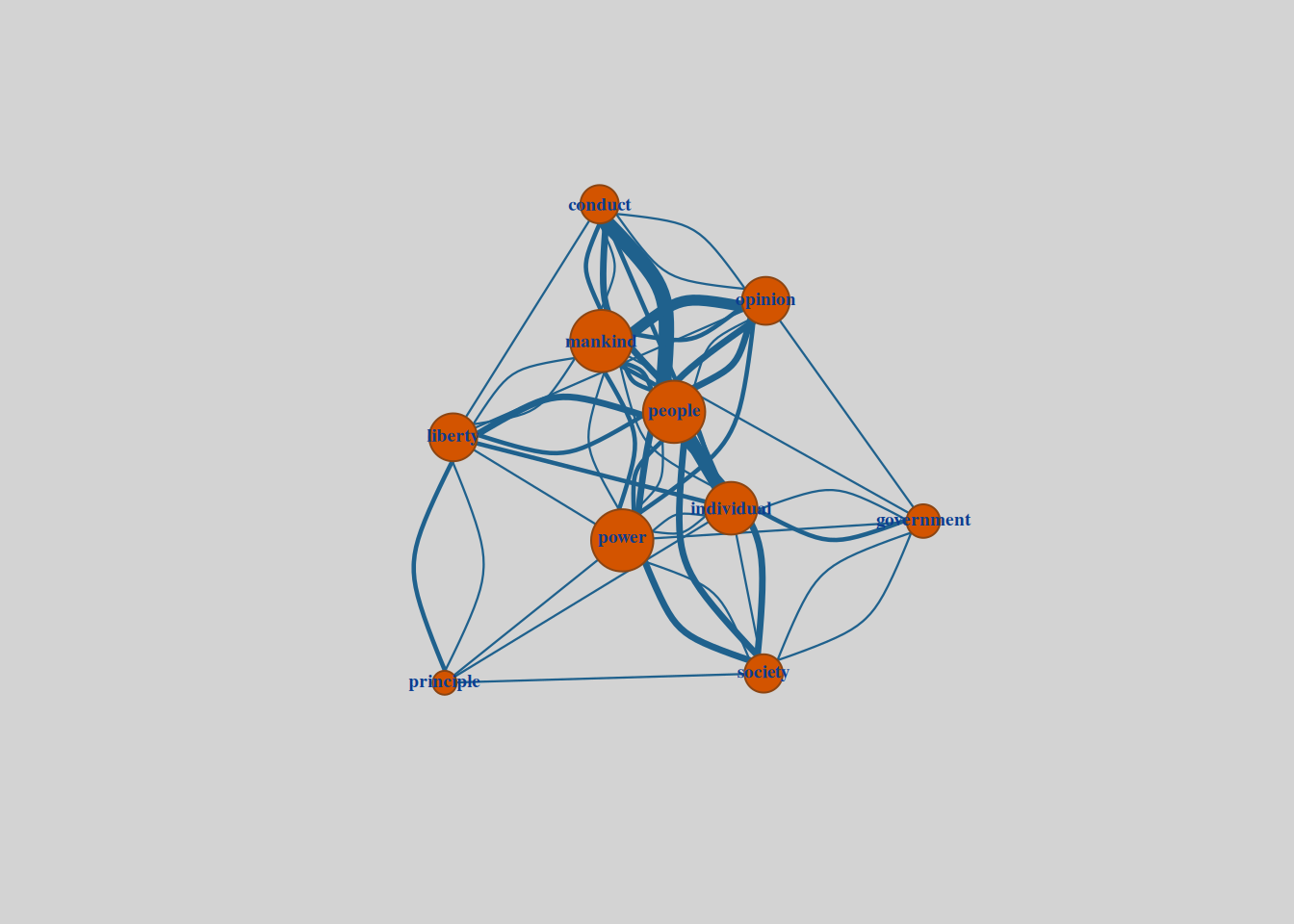 TF-IDF reveals the chapter’s emphasis on external authority and limitations on governance. The focus on terms like “external,” “mandates,” “rulers,” and “limitation” underscores Mill’s effort to historically and philosophically ground his argument for limiting societal and governmental interference. At the same time, terms like “independence” and “rightfully” highlight the chapter’s normative goals, advocating for autonomy and the ethical justification of interventions. Together, these terms demonstrate how Mill frames his argument for liberty, balancing historical context with philosophical rigor.
